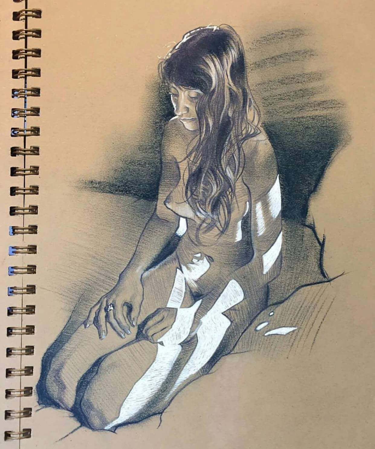 Drawings made with Hatching Methods by using Ball Point Pens, Pencils, Markers on Sand Paper